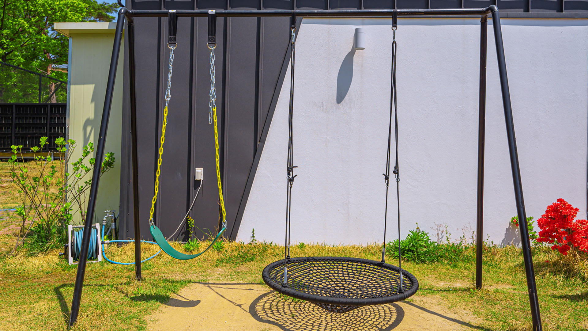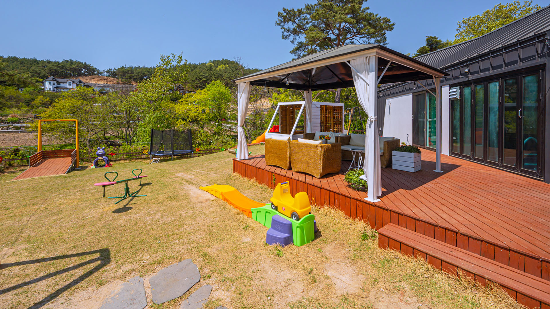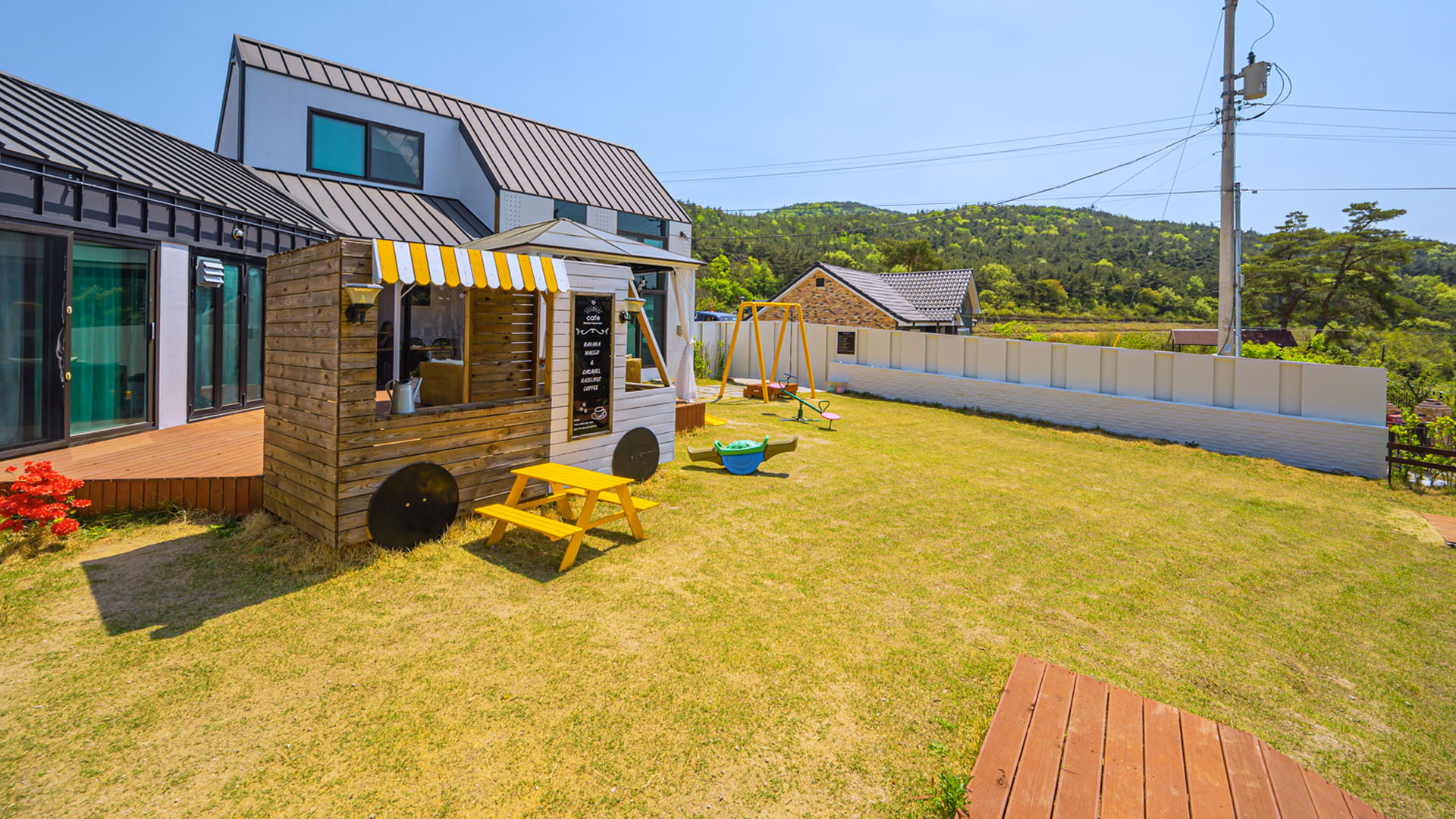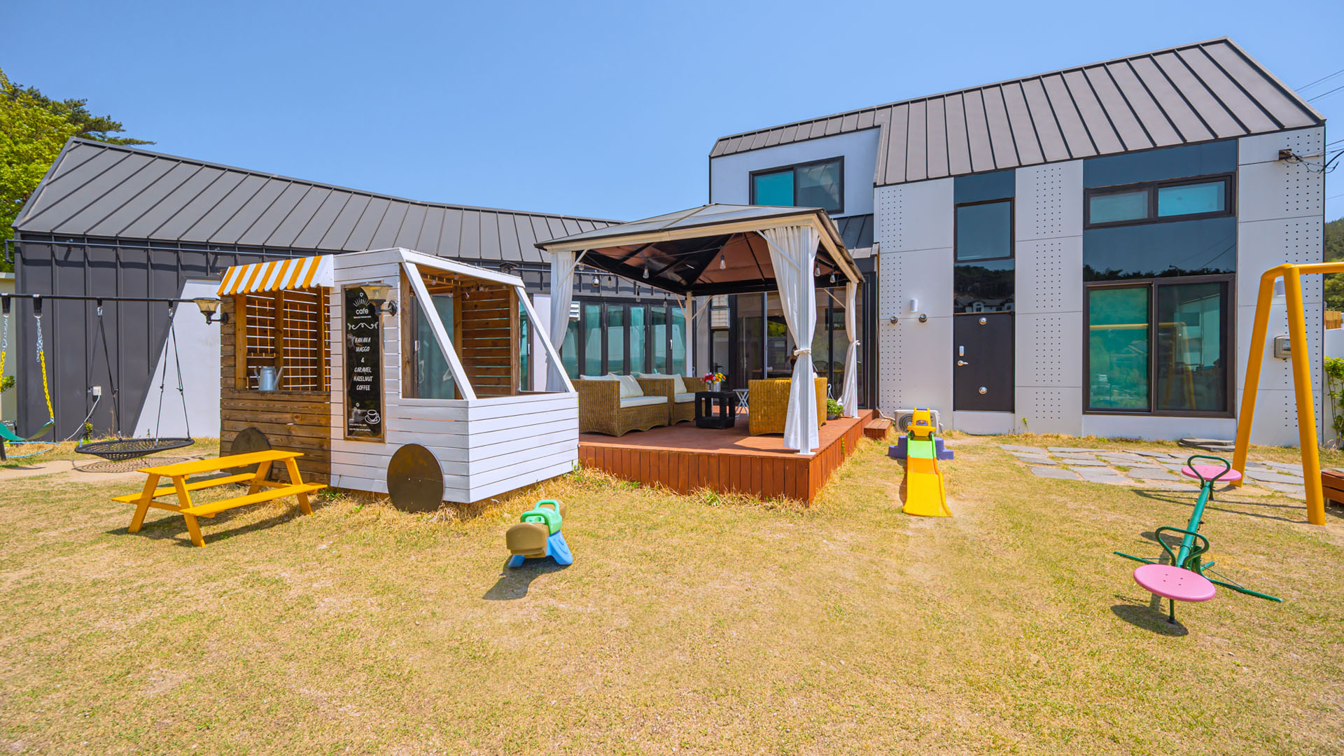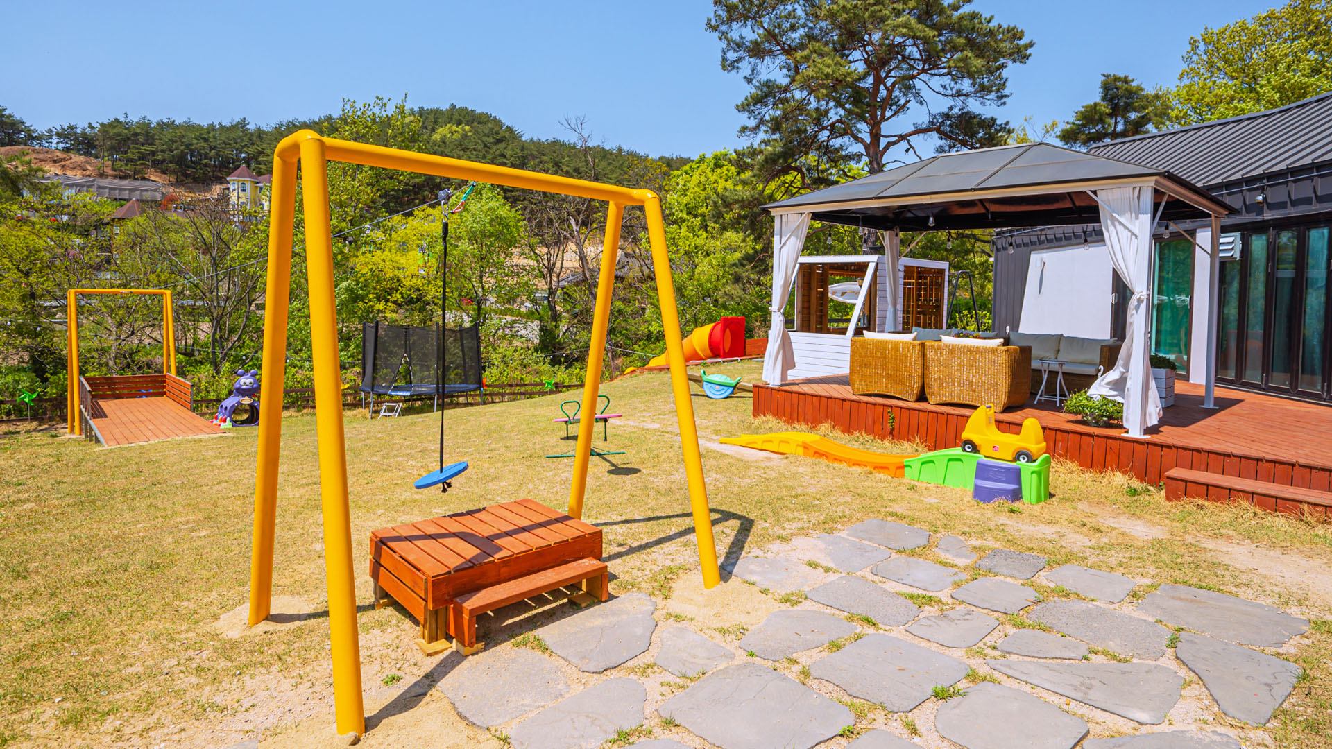 *야외놀이시설 : 17M짚라인, 4.5M대형미끄럼틀, 시소, 그네, 클라이밍, 트렘폴린, 해적선 모래놀이, 유아롤러코스터, 키즈하우스 등
