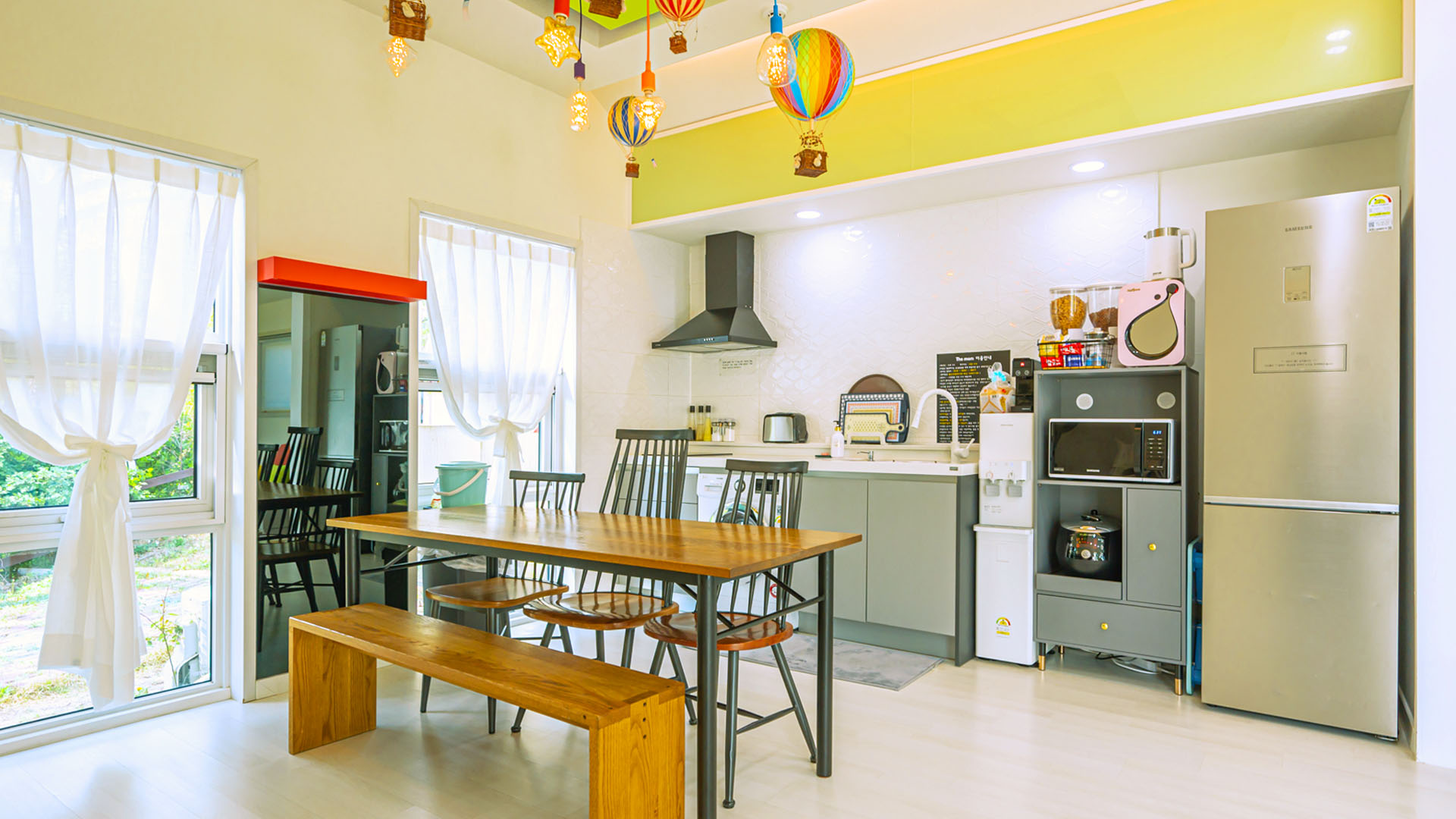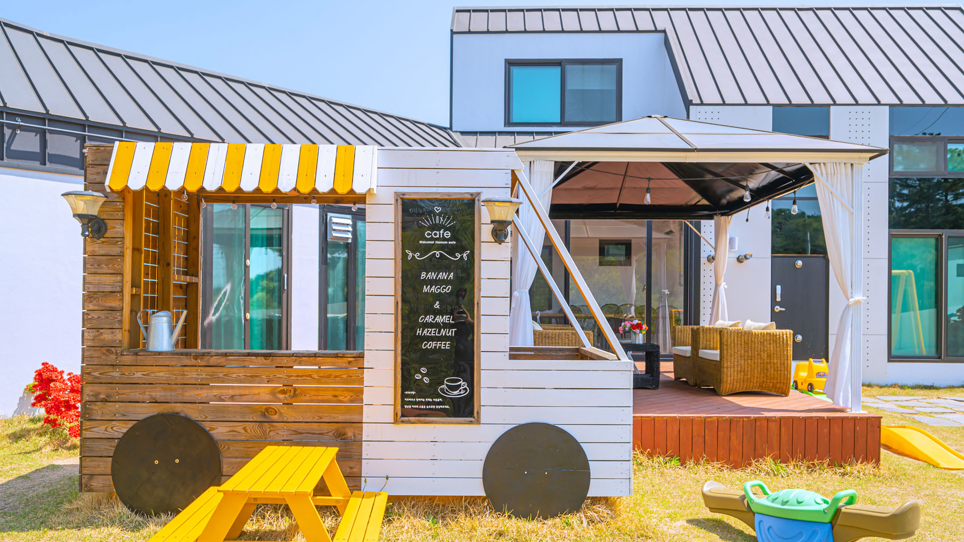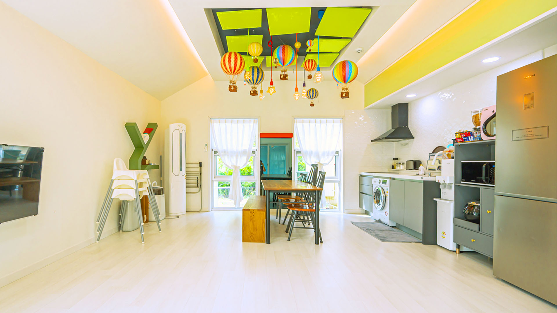*구비물품 : 젖병세정제,젖병소독기,드럼세탁기,유아세제,어메니티,바디워시,웰컴간식(과자,음료,탄산,계란,라면,일리커피캡슐,식빵,우유,시리얼등비치),튜브바람넣는기계(바베큐장비치),일회용룸(종이컵,키친타올,비닐장갑,호일,수세미,행주),조미료(식용유,간장,식초,설탕,소금),패밀리침대방2개,키즈룸,욕실2개,온수수영장(일반튜브2,보행기튜브2),분유포트,일리커피머신,토스트기,정수기 등