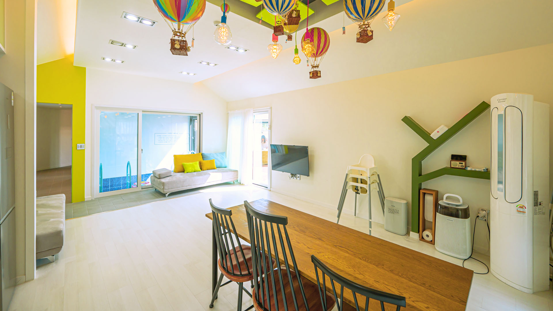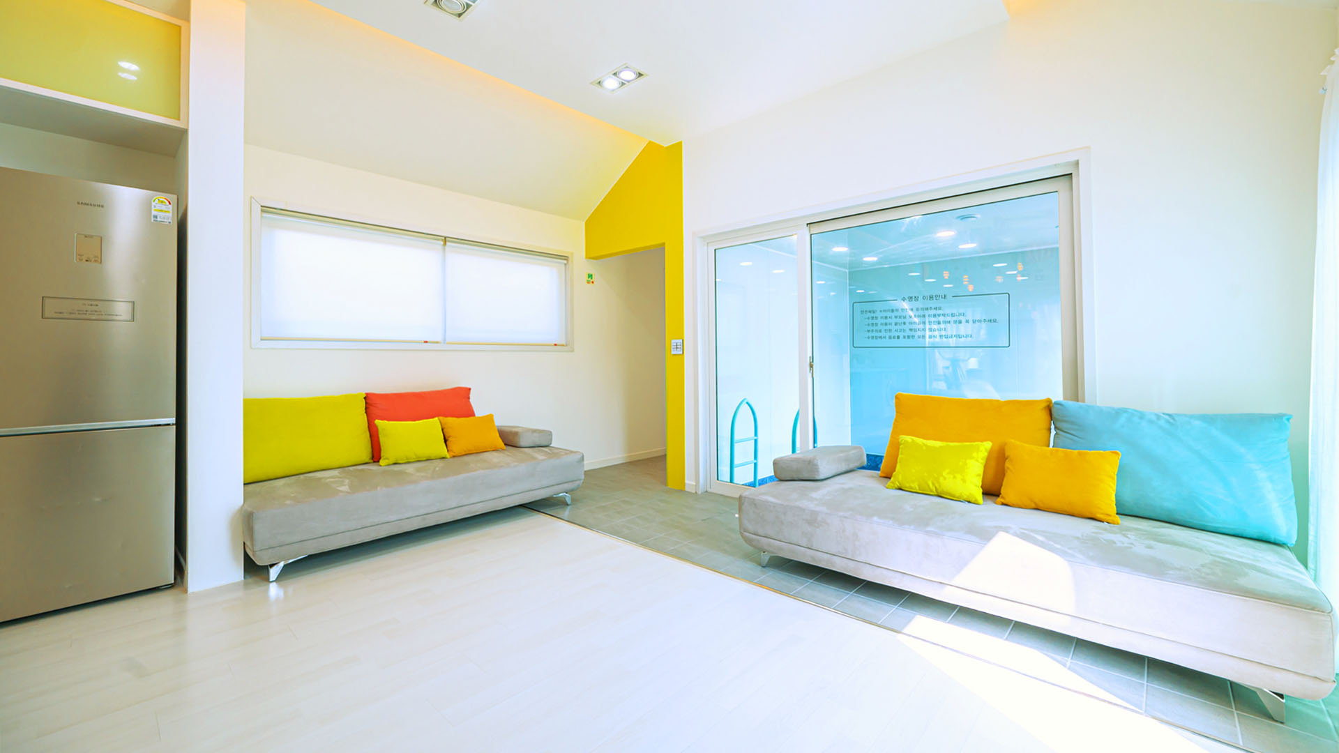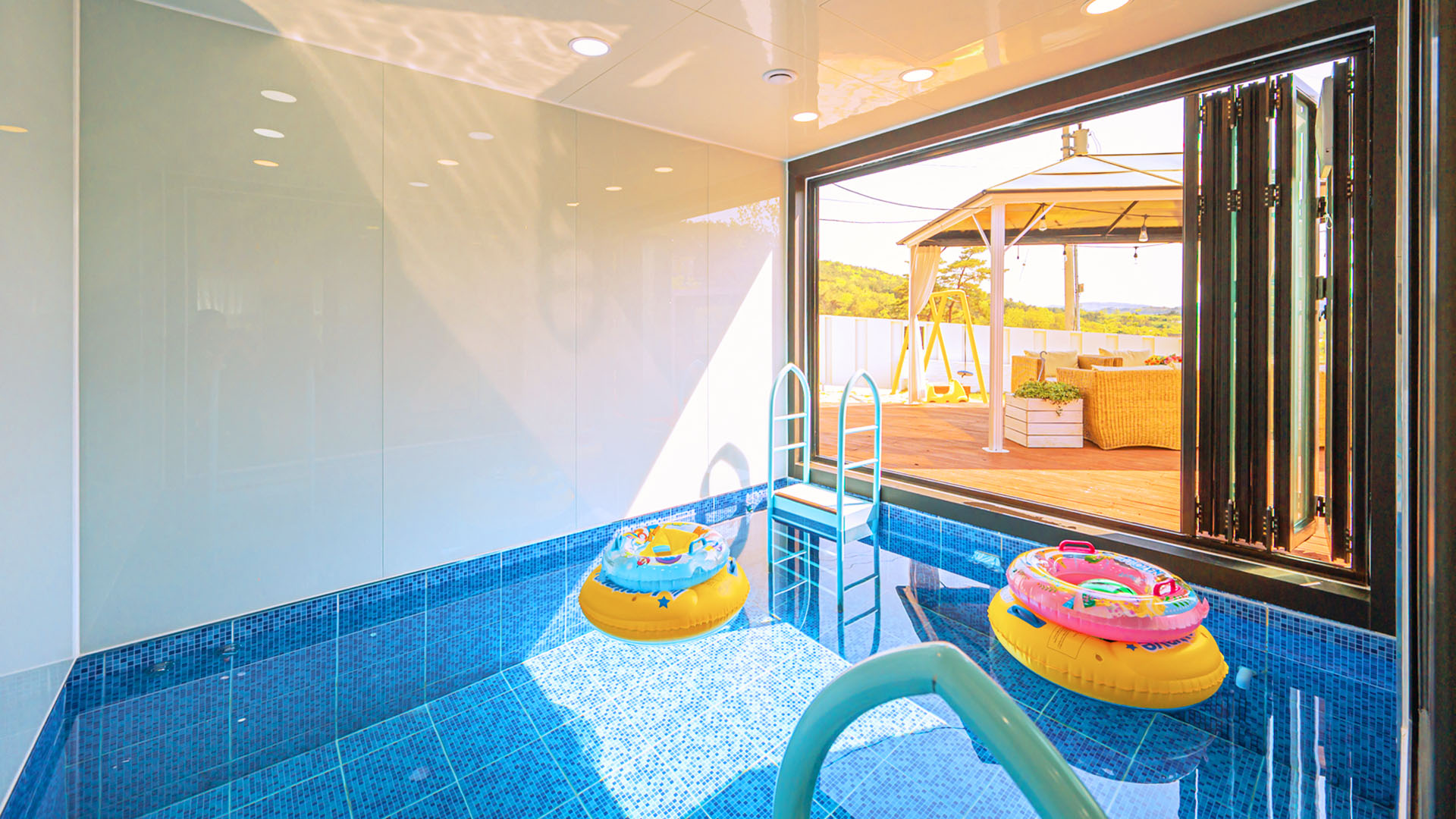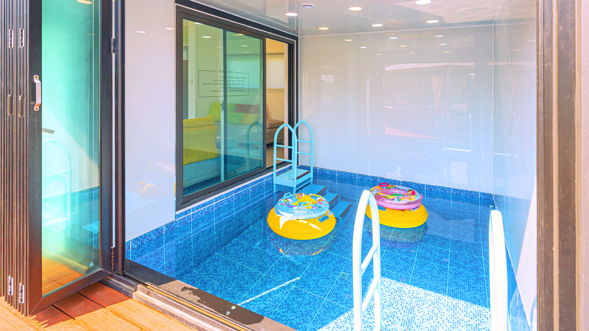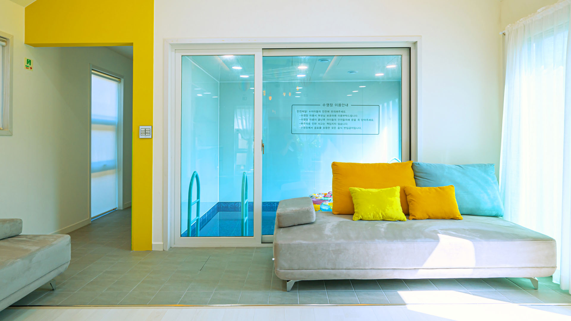 1층:실내수영장(사계절온수풀/매일새물/온수무료)+파우더룸+키즈룸+넓은거실겸주방+욕실2